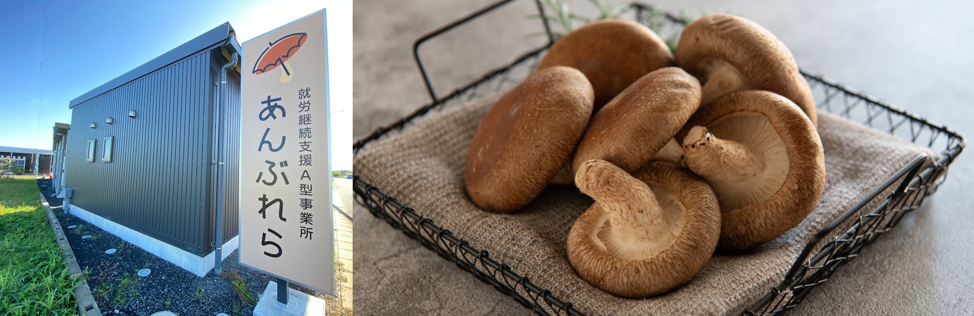 あんぶれらでは障がい者の方の就労支援を目指して、しいたけの製造販売を行っています。仲間の個性や能力を尊重し、働く喜びを皆で共感することで、精神的・社会的自立を援助していきます。